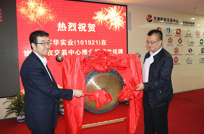 5月28日上午10時(shí),蘭州市政府金融辦與甘肅股權(quán)交易中心戰(zhàn)略合作簽約暨蘭州企業(yè)掛牌儀式在甘肅股權(quán)交易中心正式舉行。萬(wàn)華金慧總經(jīng)理施強(qiáng)代表甘肅萬(wàn)華實(shí)業(yè)集團(tuán)有限公司與蘭州銀行公司業(yè)務(wù)部總經(jīng)理盛柏涵在儀式上共同鳴鑼,萬(wàn)華實(shí)業(yè)集團(tuán)在甘肅股權(quán)交易中心推介板成功掛牌,掛牌名稱為:萬(wàn)華實(shí)業(yè),掛牌代碼為:101921。