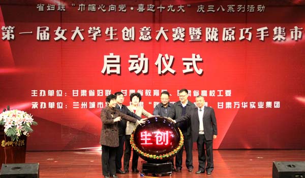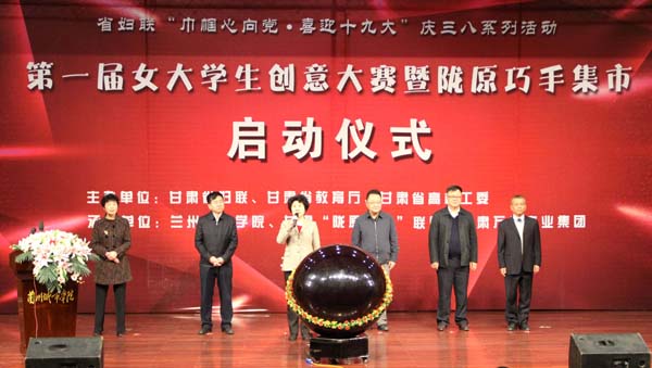 睿智創(chuàng)新始于心,激情創(chuàng)業(yè)踐于行。36日下午16時(shí)30分,由甘肅省婦聯(lián)、省教育廳、省高校工委主辦,蘭州城市學(xué)院、甘肅“隴原巧手”聯(lián)盟和甘肅萬(wàn)華實(shí)業(yè)集團(tuán)承辦的“首屆女大學(xué)生創(chuàng)意大賽暨隴原巧手集市”在蘭州城市學(xué)院正式啟動(dòng)。這是全省婦女慶祝三八婦女節(jié)107周年“巾幗心向黨·喜迎十九大”系列活動(dòng)的重要內(nèi)容,也是貫徹落實(shí)《甘肅省大力推進(jìn)大眾創(chuàng)業(yè)萬(wàn)眾創(chuàng)新實(shí)施方案》,提升“隴原巧手”社會(huì)影響力,鼓勵(lì)引領(lǐng)女大學(xué)生參與大眾創(chuàng)業(yè),萬(wàn)眾創(chuàng)新行動(dòng)的有力舉措。