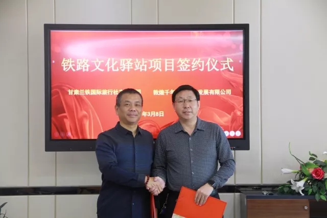 3月8日下午3時(shí),鐵路文化驛站項(xiàng)目簽約儀式在萬華集團(tuán)會(huì)議室舉行。甘肅蘭鐵國際旅行社有限公司總經(jīng)理符慶忠與甘肅萬華實(shí)業(yè)集團(tuán)總經(jīng)理、敦煌千年古城文化發(fā)展有限公司董事長牛新偉共同簽署鐵路文化驛站項(xiàng)目合作備忘錄。